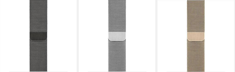Design: The stainless steel Milanese Loop comes in Gold, Graphite, or Silver, and best complements an Apple Watch with a stainless steel case. It doesn’t look great with aluminum Apple Watch models because of the latch color mismatch. For $99, it's a great way to look classy and it was my go-to band for two years.