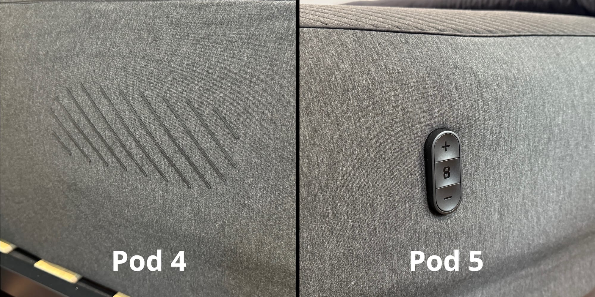 With older generations, if I felt hot in the middle of the night, I’d often avoid lowering the temp because I didn’t want to blind myself with my phone screen. The Pod 4 solved this with tappable zones, but Eight Sleep switched to physical temperature buttons with the Pod 5. That's the biggest change between the two. Personally, I'm fine with either method, but my wife, along with most people on the internet, seems to prefer the new physical buttons.