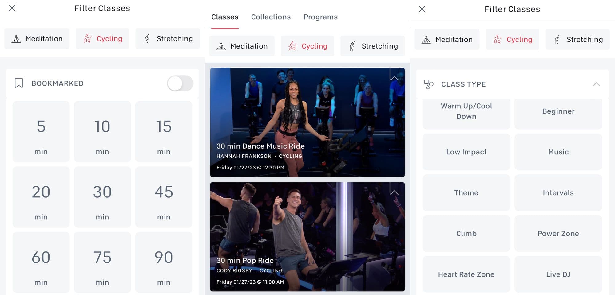 There are at least five new cycling classes posted per day, and there’s an on-demand archive from each live class.