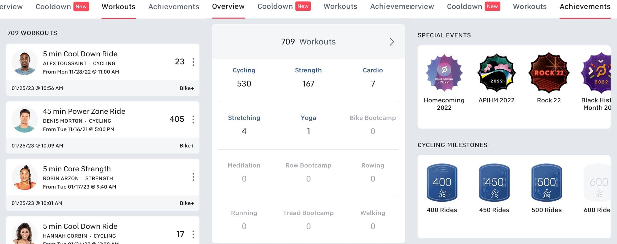 Peloton logs your output and other performance stats for each ride, tracks your personal bests, and keeps track of any streaks.