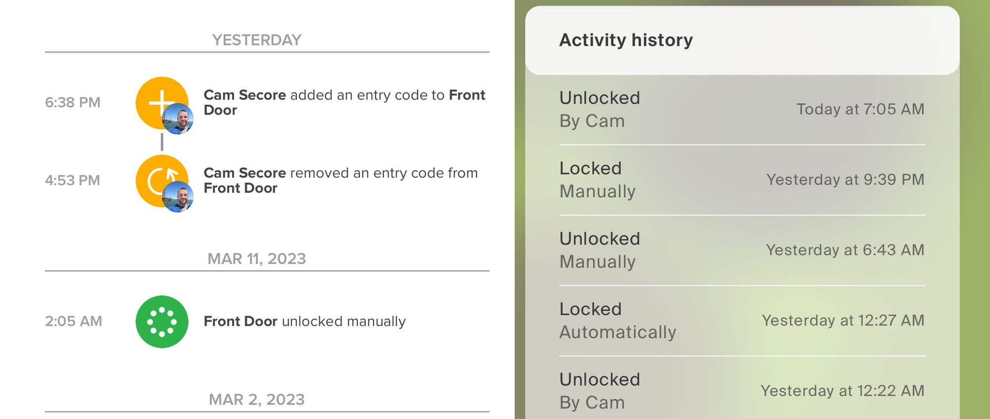 Both the Level Lock+ and Yale Assure 2 have apps that provide lock and unlock access, a log of who opened the door and when, and the ability to schedule access for guests.