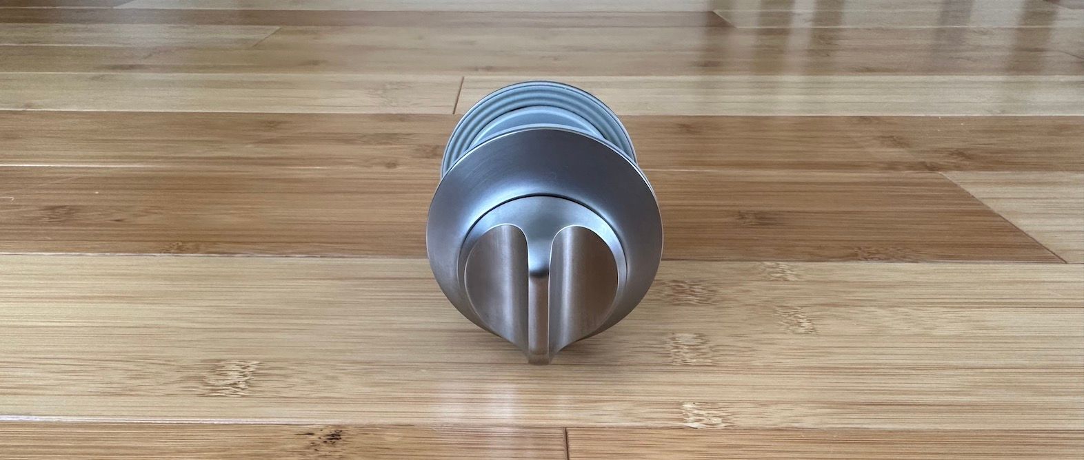 Level Lock+ looks like a traditional lock from the outside and has no branding anywhere. It even uses a traditional key. From the inside, it's the smoothest and most sleek design that I've ever tested. The deadbolt knob can be detached easily by putting a sim tool in the hole next to it.